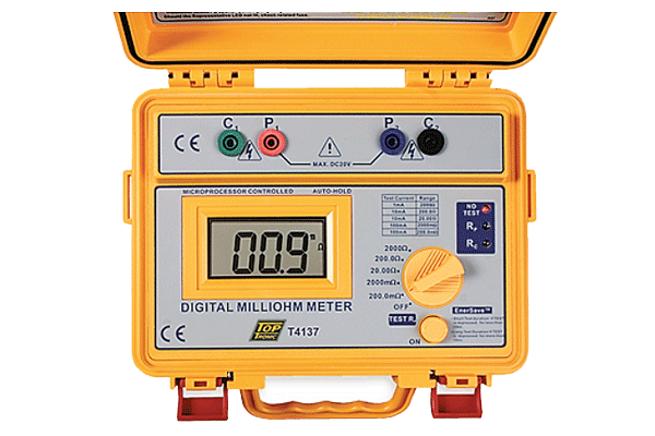 TopTronic T4137 milliOhm Meter is a microprocessor controlled 4 wire instrument.  It is light weight, battery operated and water proof when the lid is closed.